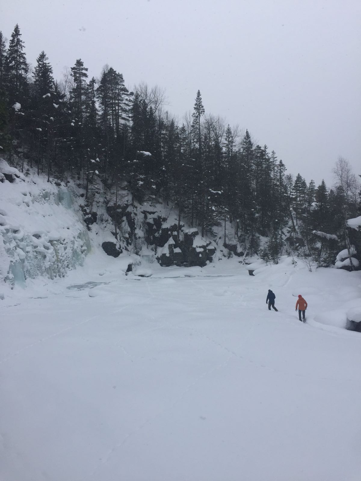 We headed here on our third day as it was a mere ten minute drive from our log cabin. Unfortunately for us there had been a lot of snowfall overnight making the approach hard work as the snow was very deep and us having to make fresh tracks. Unfortunately for us the routes were also covered in deep snow making climbing there impracticable.