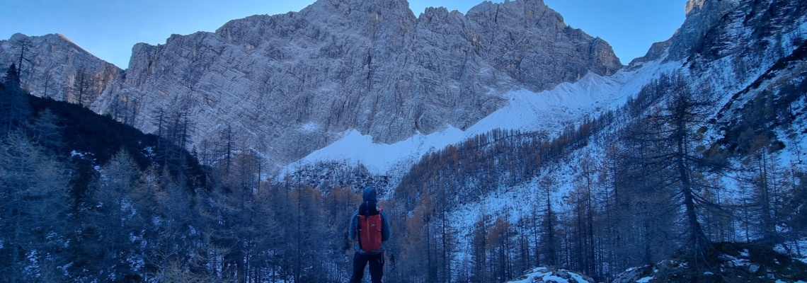 Initial research suggested that during the warmer, summer months it gets extremely busy, with lots of visitors to the region and many ascents due to guided tours and treks making use of the high mountain huts. Our idea was to visit outside of the summer season and attempt an early winter ascent, putting our winter skills to the test and hopefully finding things less hectic. We would also tackle some of the local via ferrata routes to see what was on offer and depending on the temperature and warmth from the sun, check out the local climbing crags. Fortunately for us, Easy Jet must have got wind of our plans as they were about to start offering flights to Ljubjiana, Slovenia’s capital from the first week of November, which was perfect. Even though the stats show November as one of the wettest months, we were hoping for a snowy adventure.